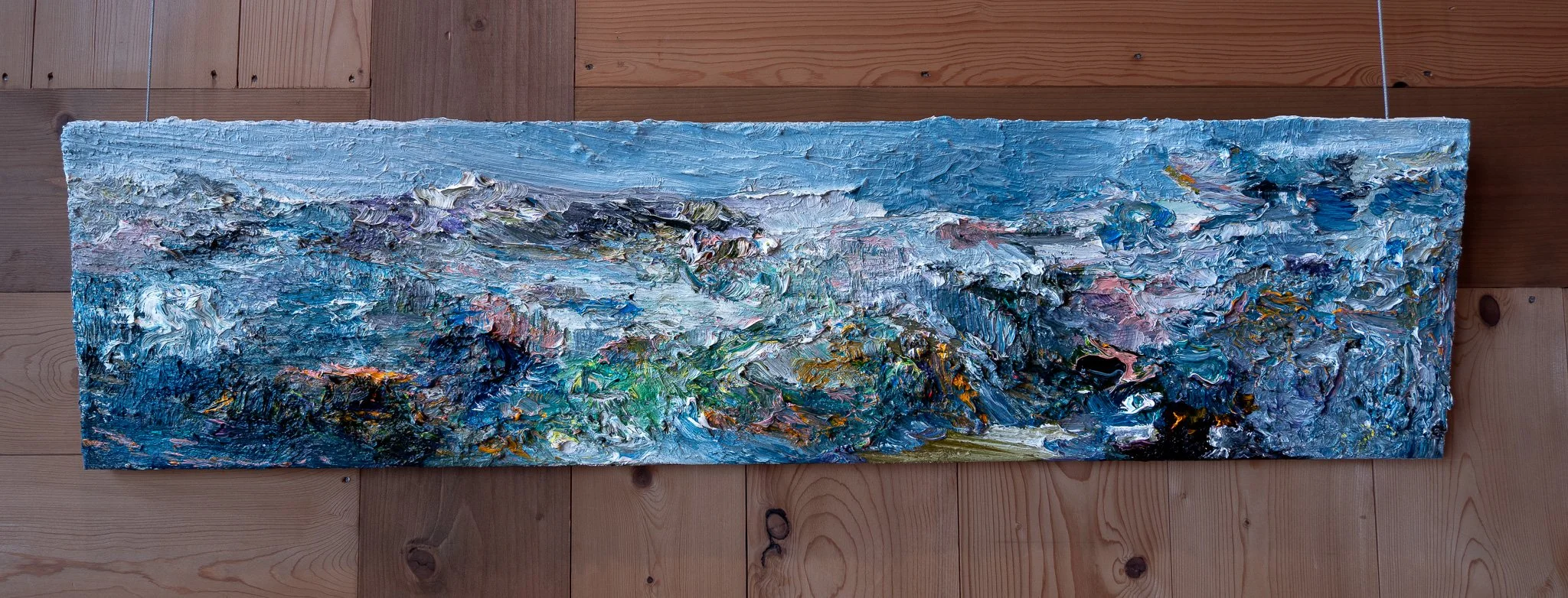 Landschappen zijn van dan af en tot op vandaag belangrijke thema’s in haar werk. Maar ze beperkt zich daarbij zeker niet tot een loutere weergave van wat ze ziet. Diepere indrukken, eigen emoties en ecologische bedenkingen zijn altijd sterk aanwezig: soms onderhuids en zeker nooit drammerig. Tijdens een reis door Ijsland brengt haar gids onbewust een nieuw thema in haar werk aan: wat als de klimaatverandering verder ingrijpt in het landschap?